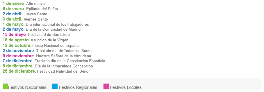 Os mostramos la relación de días festivos para Madrid en el ejercicio 2026: