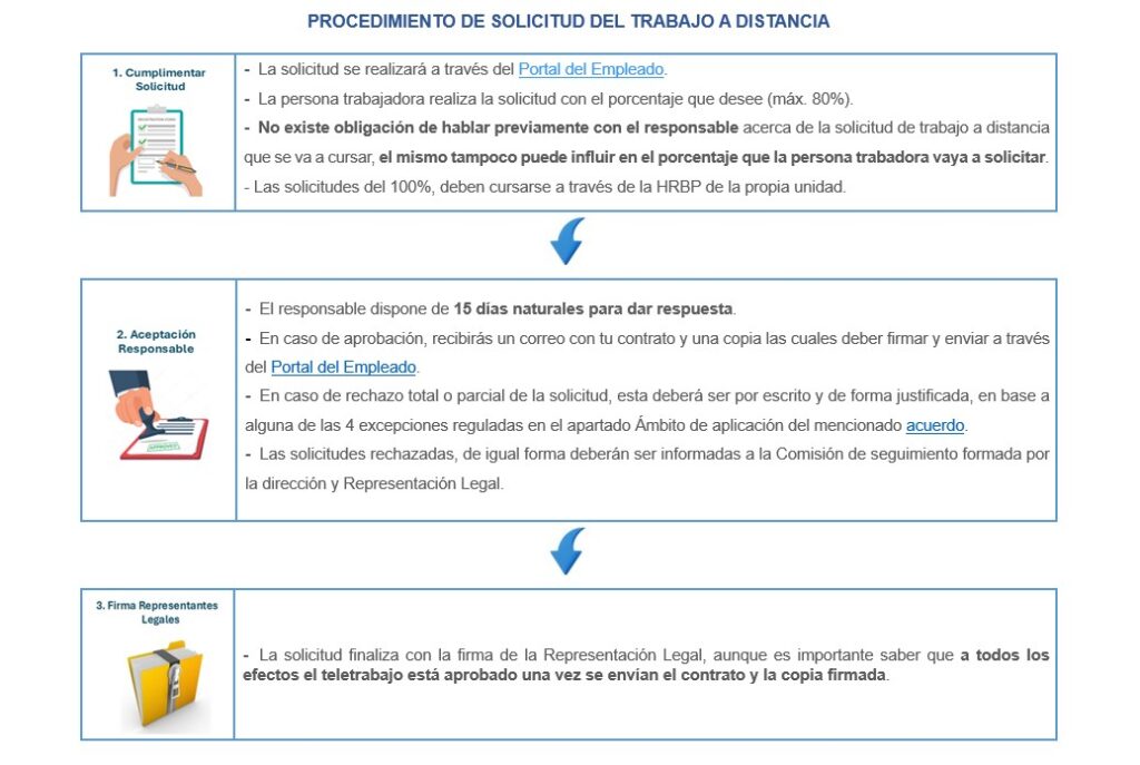 Desde la entrada en vigor del acuerdo de trabajo a distancia, toda persona trabajadora tiene derecho a disfrutar del trabajo a distancia en la empresa, pudiéndose solicitar hasta un máximo del 80%. De igual forma, para situaciones excepcionales (enfermedad, situación geográfica, etc.) podría llegar incluso hasta el 100% pactándolo con el responsable.