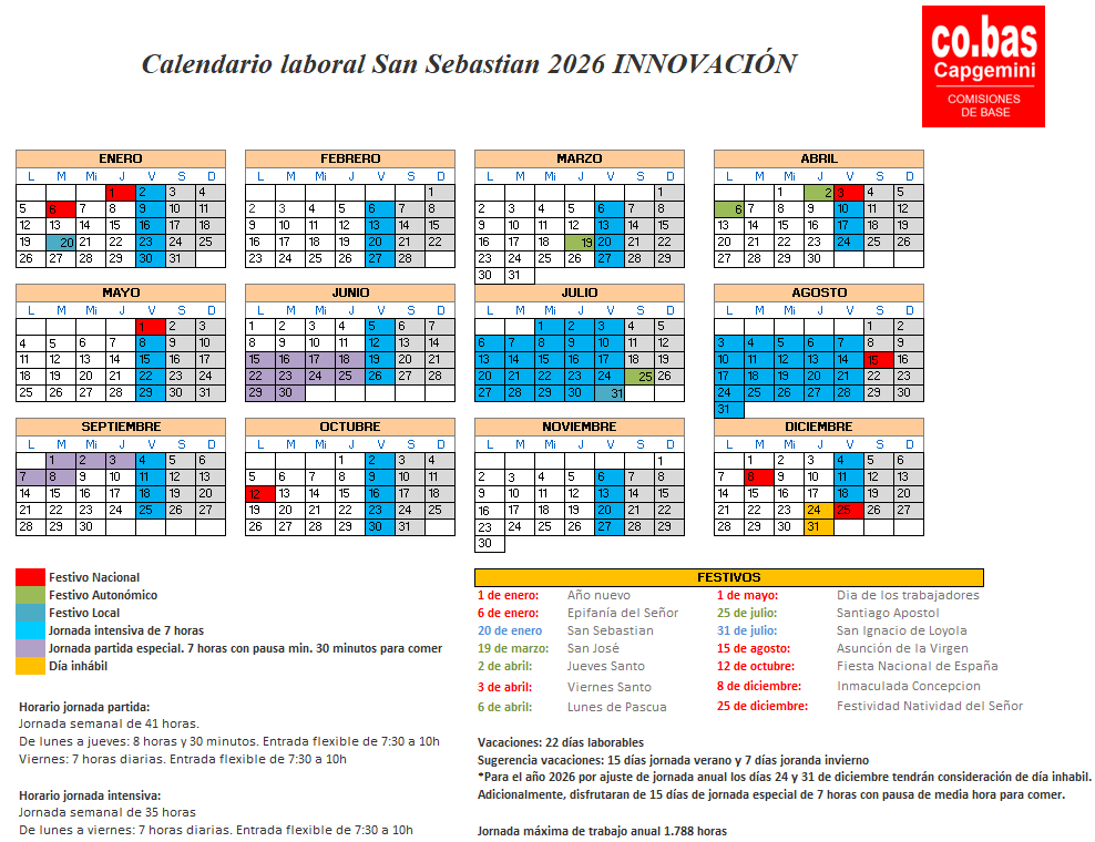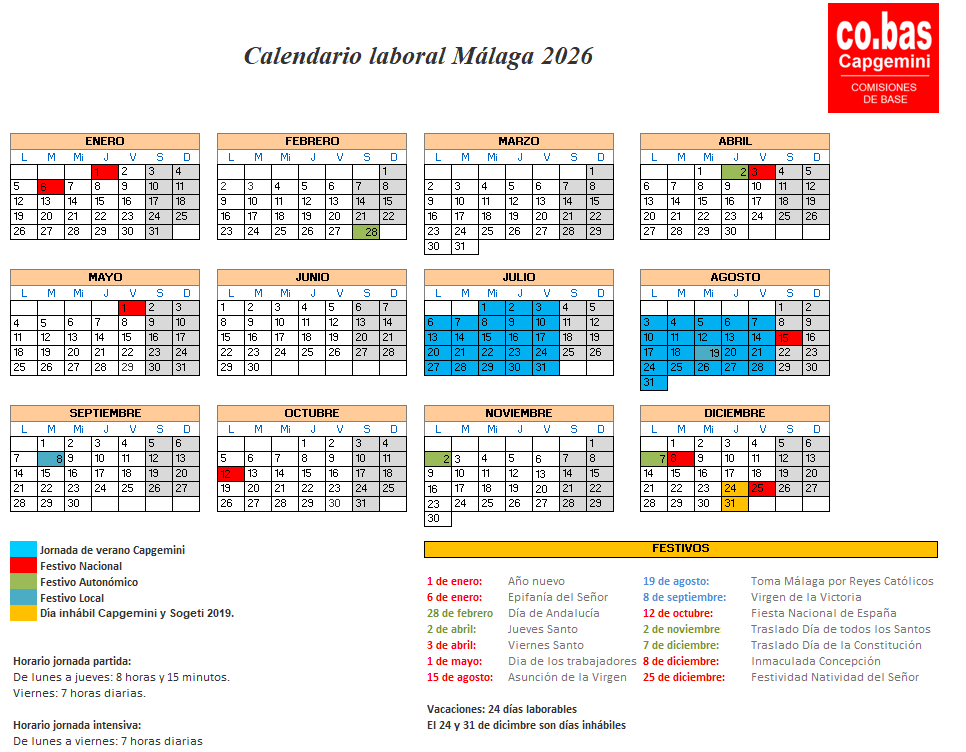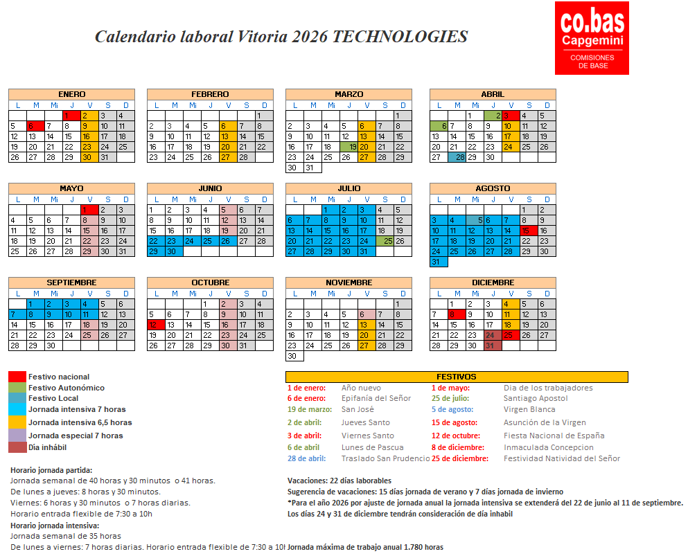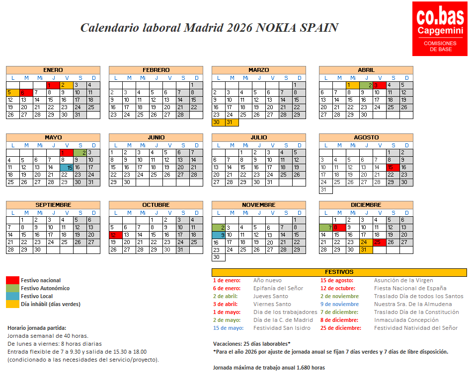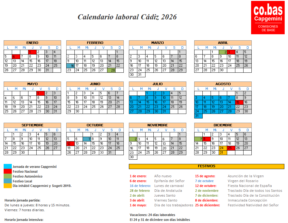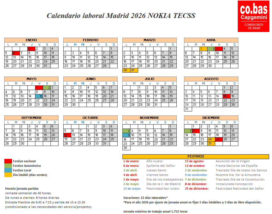 CALENDARIOS 2026 Madrid Capgemini, Sogeti 2010 y Sogeti 2019AltranNokia Capgemini, Sogeti 2010 y Sogeti 2019 Innovación Technologies CIS Teccon Rodriser Nokia Spain Nokia TECSS Barcelona Capgemini, Sogeti 2010 y Sogeti 2019Altran Capgemini, Sogeti 2010 y Sogeti 2019 Innovación Technologies CIS San Esteve CapgeminiAltran Capgemini Innovación CIS Technologies Asturias CapgeminiAltran Capgemini Innovación Valencia Capgemini y Sogeti 2010Altran Capgemini y Sogeti 2010 Innovación CIS Murcia CapgeminiAltran Capgemini Innovación Sevilla Capgemini y Sogeti 2019Altran Capgemini y Sogeti 2019 Innovación Technologies CIS Vigo CapgeminiAltran Capgemini Innovación Málaga Capgemini y Sogeti 2019Altran Capgemini y Sogeti 2019 Innovación Cádiz Capgemini y Sogeti 2019Altran Capgemini y Sogeti 2019 Innovación Teccon Technologies Ferrol CapgeminiAltran Capgemini Innovación San Sebastian CapgeminiAltran Capgemini Innovación Valladolid CapgeminiAltran Capgemini Innovación Vitoria CapgeminiAltran Capgemini Innovación Technologies Zaragoza CapgeminiAltran Capgemini Innovación
