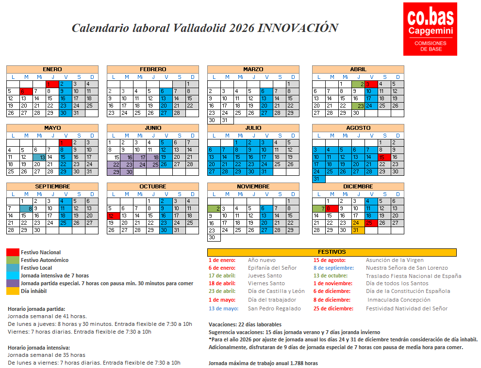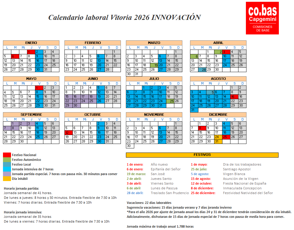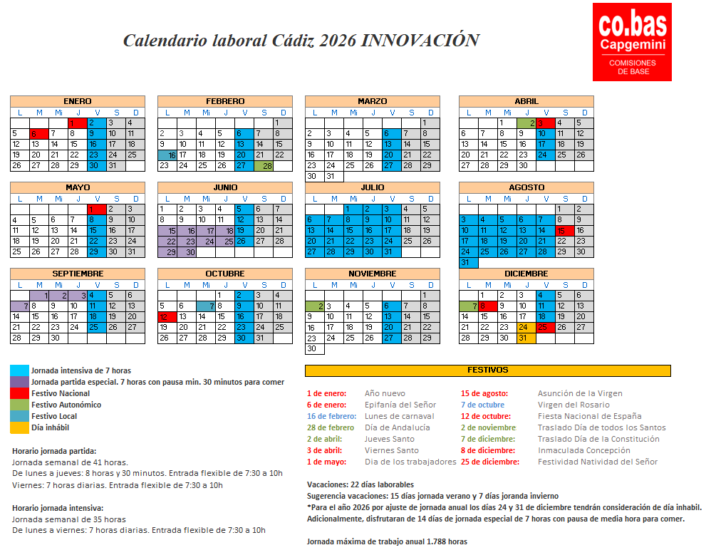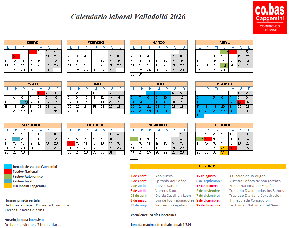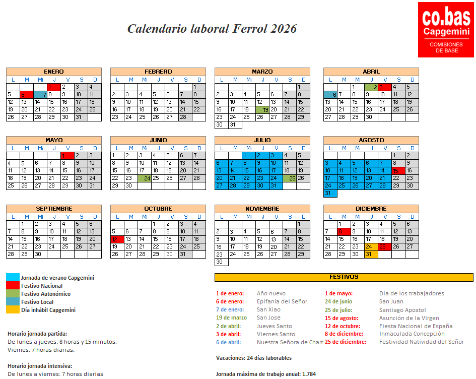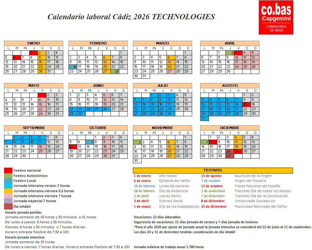 CALENDARIOS 2026 Madrid Capgemini, Sogeti 2010 y Sogeti 2019AltranNokia Capgemini, Sogeti 2010 y Sogeti 2019 Innovación Technologies CIS Teccon Rodriser Nokia Spain Nokia TECSS Barcelona Capgemini, Sogeti 2010 y Sogeti 2019Altran Capgemini, Sogeti 2010 y Sogeti 2019 Innovación Technologies CIS San Esteve CapgeminiAltran Capgemini Innovación CIS Technologies Asturias CapgeminiAltran Capgemini Innovación Valencia Capgemini y Sogeti 2010Altran Capgemini y Sogeti 2010 Innovación CIS Murcia CapgeminiAltran Capgemini Innovación Sevilla Capgemini y Sogeti 2019Altran Capgemini y Sogeti 2019 Innovación Technologies CIS Vigo CapgeminiAltran Capgemini Innovación Málaga Capgemini y Sogeti 2019Altran Capgemini y Sogeti 2019 Innovación Cádiz Capgemini y Sogeti 2019Altran Capgemini y Sogeti 2019 Innovación Teccon Technologies Ferrol CapgeminiAltran Capgemini Innovación San Sebastian CapgeminiAltran Capgemini Innovación Valladolid CapgeminiAltran Capgemini Innovación Vitoria CapgeminiAltran Capgemini Innovación Technologies Zaragoza CapgeminiAltran Capgemini Innovación